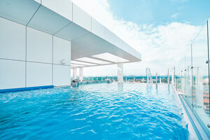 Das großzügige Radisson Blu Resort mit 340 Zimmern ist ein moderner 5-Sterne-Komplex. Das Hotel überzeugt durch seine Lage und das riesige Unterhaltungsangebot. Das Radisson Blu liegt traumhaft in erster Reihe im Bäderviertel am östlichen Ende der Promenade und direkt hinter den Dünen am feinsandigen Ostseestrand in Swinemünde. Das Radisson verfügt über Rezeption, Lobby, mehrere Lifte, Buffet-Restaurant THE LARDER, À-la-carte-Restaurant, Panorama-Café in der 13. Etage, Spielzimmer und eine Wechselstube. Es bietet darüber hinaus ein Freibad auf der Dachterrasse in 50 m Höhe, einen Nachtclub mit Billard und 2 Bowlingbahnen, eine Wellnessabteilung & Fitnessräume. Der Aquapark rundet das Angebot ab – mit Sportbecken (25 m x 8 m mit 4 Bahnen), Freizeit- und Erholungsbecken mit Wellenbad, Wirbelbecken „Wilder Fluss“, Kinderbecken mit 4 Rutschen, 4 Whirlpools sowie Saunalandschaft mit Sauna, Dampfbad, Infrarotsauna, Aromasauna, Eisgrotte und Tepidarium/Wärmeraum. Doppelzimmer Standard View mit Dusche/WC, Föhn, Bademantel, Flachbildfernseher, Telefon, WLAN-Internet, Sitzecke bzw. Sofa und Balkon mit seitlichem Meerblick. Doppelzimmer Standard: keinen Meerblick und keinen Balkon. Das Radisson Blu Resort versteht sich als Wellnesshotel und bietet sowohl Entspannung & Unterhaltung als auch ein großes Wellness – und Beautyangebot. Anwendungen (Auszug): Aromamassagen, Kerzenmassagen, Ölmassagen, Rücken- & Ganzkörpermassagen, Wellness-Massagen, Hot-Stone-Massagen, Gesichts-, Hals- und Dekolleté-Massagen, große Auswahl an Gesichtsbehandlungen. Freier Eintritt zum Aqua Park für 1 Stunde p. Tag ohne Unterbrechung (inklusive Saunalandschaft). Kostenfreie Nutzung vom Fitnessraum. Kostenfreier Zimmertresor. Anwendungspaket: 1x Eingangsuntersuchung durch einen Physiotherapeuten, 2x Wassergymnastik, 3x Teilmassage je ca. 25 Minuten, 3x Moorpackung