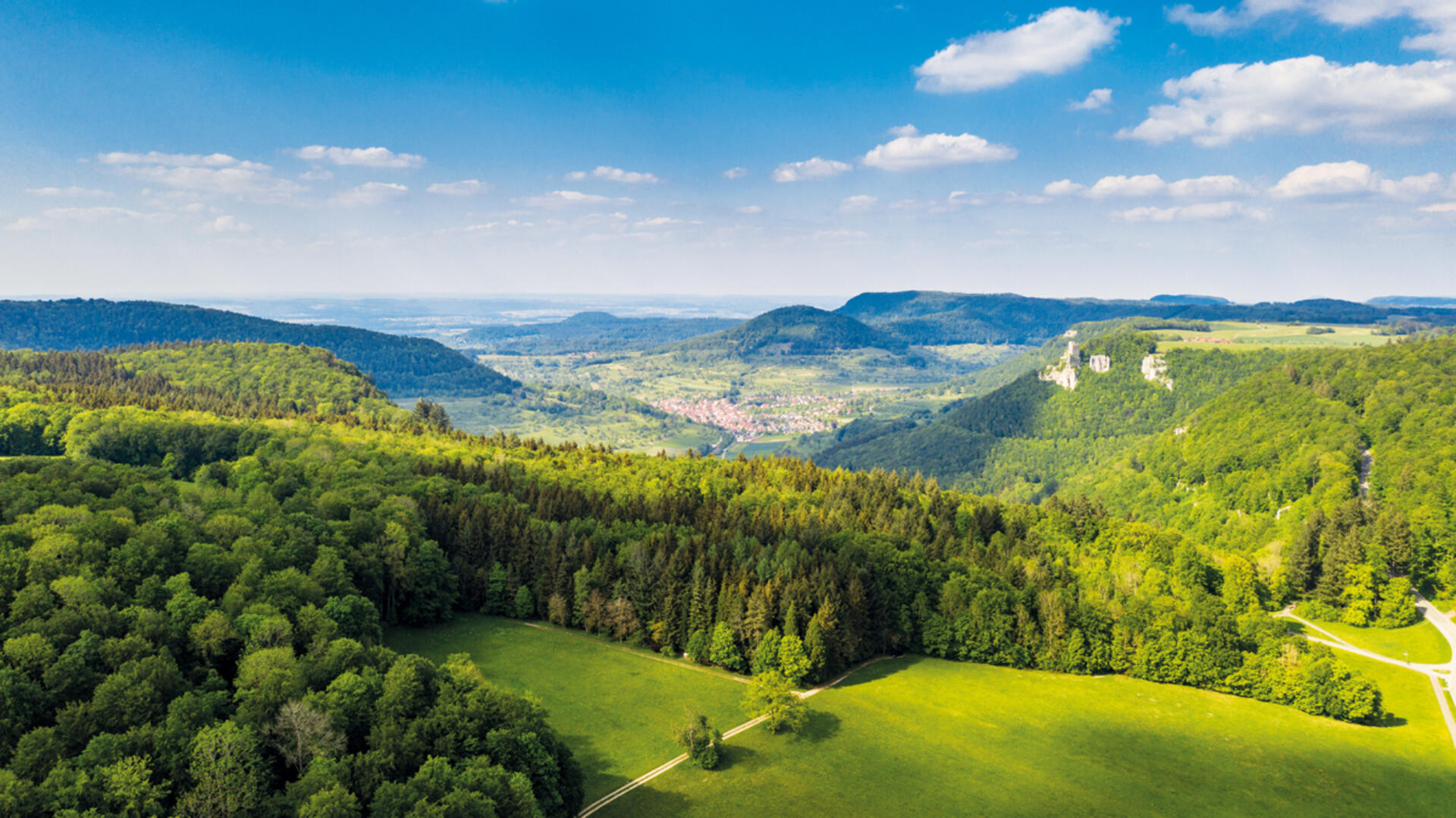 Wir starten am Fuße der Alb. In steilen Serpentinen geht es „d’Stoig nauf“. Aus den Buchenwäldern des Albtraufs ragen hell leuchtende Jurafelsen. Vom Bus aus bieten sich weite Blicke ins Albvorland bis „zom Staufa niber“. Imposante Burgen und Ruinen sitzen auf den Gipfeln – wir sind in einer der burgenreichsten Regionen Deutschlands! Schon warten geologische Besonderheiten wie Dolinen, Maare und Höhlen – wie war das mit dem Schwäbischen Vulkan? Schnell wechseln die Landschaftsbilder. Kein Fluss schlängelt sich so schön durch die Landschaft wie die Lauter, dazu bizarre Felsen, malerische Burgruinen und nette Albdörfer. Das größte staatliche Pferdegestüt, barocke Türme und schließlich unsere „blaue“ Donau. Jetzt ist die Alb überquert. Übers „Goißatäle“ und Geschichten zu Hexen, Mühlen und zur dritthöchsten Eisenbahnbrücke Deutschlands geht es wieder zurück an den Fuß der Alb.