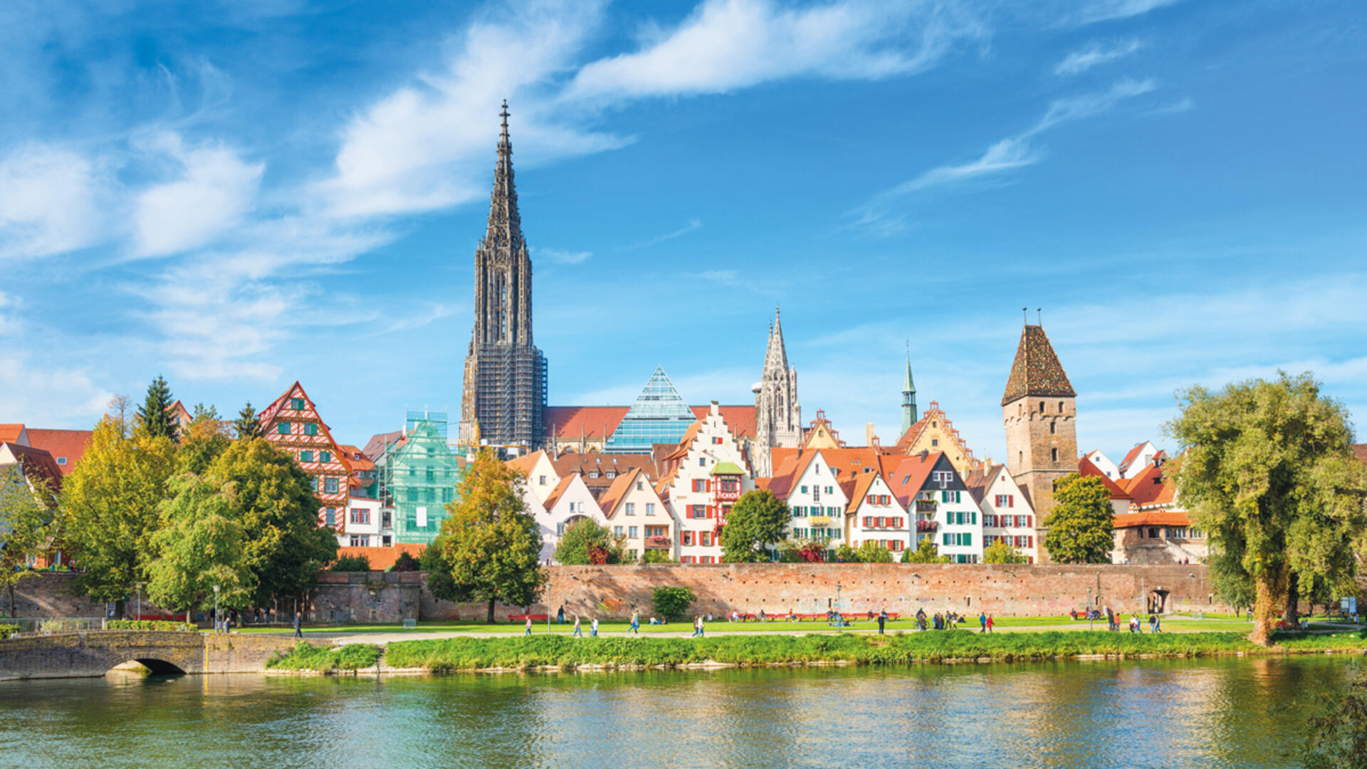 Umrahmt von leuchtenden Felsen liegt Blaubeuren im Tal der Ur-Donau. Ein kleiner Spaziergang durch das ehemalige Kloster führt zum sagenumwobenen Quelltrichter des Blautopfs, der seinem Namen alle Ehre macht. Wir folgen dem Lauf des Wassers talabwärts bis zum höchsten Kirchturm der Welt. Idyllisch an der Mündung der Blau in die Donau liegt das Fischer- und Gerberviertel. Einst Heimat der Handwerker, haben sich im schön restaurierten Quartier inzwischen Restaurants, Galerien und kleine Fachgeschäfte etabliert. Hier findet man auch das schiefste Hotel der Welt! Weiterfahrt nach Ulm. Einst als Bollwerk gegen Feinde errichtet ist die Stadtmauer heute rund 500 Jahre später ein beliebter Promenadenweg mit Blick auf die Donau.