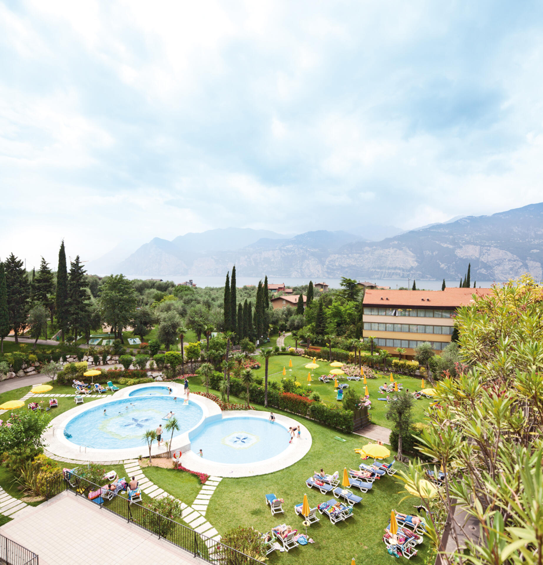 Ein eindrucksvoller jahrhundertealter Olivenhain von dreißigtausend Quadratmetern umgibt das Hotel in Malcesine del Garda. Das Hotel verfügt über den Komfort eines Luxushotels und die Exklusivität seiner beneidenswerten Höhenlage. Diese bietet Landschaftsbilder vom gesamten Gardasee. Tagsüber wird ein Shuttleservice vom Hotel zum Zentrum von Malcesine und zurück angeboten, um einen angenehmen Aufenthalt am Gardasee zu gewährleisten, aber auch zu Fuß ist es ein schöner Spaziergang in den Ort und zum See. Nur wenige Schritte vom Hotel entfernt beginnt die eindrucksvolle Seilbahn, die in zwei verschiedenen Abschnitten bis zu den Bergspitzen des Monte Baldo hinauffährt.