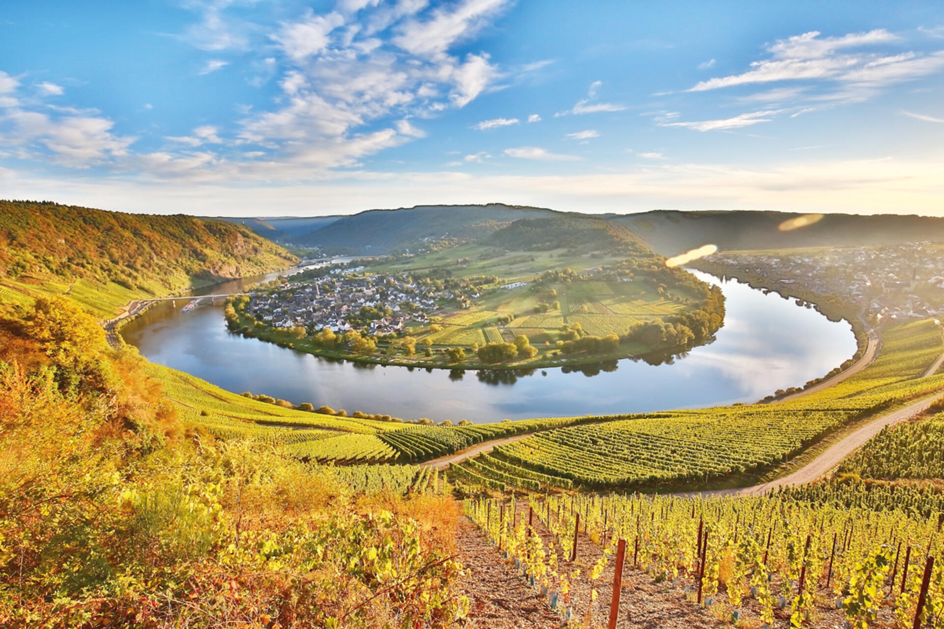 Durch das zauberhafte Moseltal erreichen wir unser nächstes Ziel Bernkastel-Kues. Aufenthalt in der wohl schönsten Stadt an der Mosel mit ihren prächtigen Giebelfachhäusern. Dann geht es mit dem Schiff auf der Mosel weiter nach Traben-Trarbach mit markantem Jugendstil-Tor und zurück entlang der Mosel mit ihren vielen Windungen und steilen Weinterrassen. Abendessen und Übernachtung.